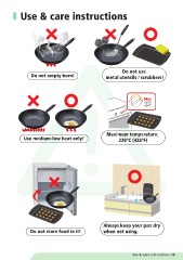 Use & care instructions Do not empty burn! Do not use metal utensils / scrubbers! Use medium-low heat only! Maximum temperature: 220°C (428°F) Do not store food in it! Always keep your pan dry when not using. Use & Care Instructions 16